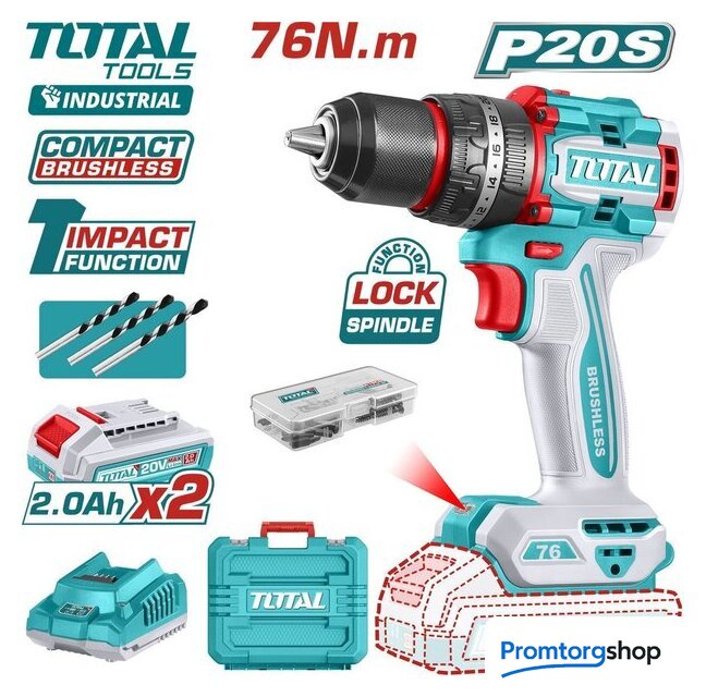 Комплектация | - Бесщеточная дрель-шуруповерт - 1 шт.- Аккумулятор 2,0 Ач TFBLI20011 - 2 шт.- Зарядное устройство 2,0 А TFCLI2001 - 1 шт.- Сверло по камню- 3 шт.- Набор акксессуаров - 47 шт.- Инструкция- Кейс |