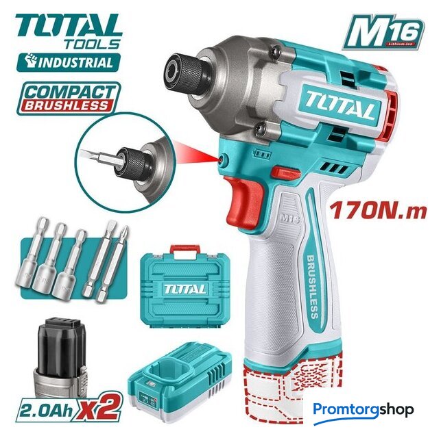 | Комплектация | - Винтоверт - 1 шт.- Аккумулятор 2,0 Ач TFBLI1620 - 2 шт.- Зарядное устройство TFCLI1613 - 1 шт.- Биты - 2 шт.- Торцевые насадки - 3 шт.- Инструкция- Кейс |
