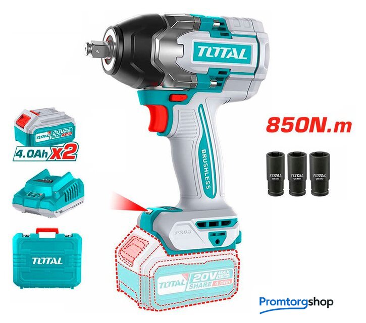 Комплектация | - Гайковерт - 1 шт.- Аккумулятор 4,0 Ач - 2 шт.- Зарядное устройство - 1 шт.- Торцевая голока (22, 24, 27 мм) - 3 шт.- Инструкция- Кейс |