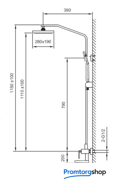 | Диаметр (ширина) верхнего душа | 280*280 мм |