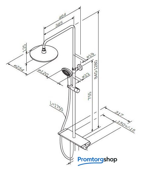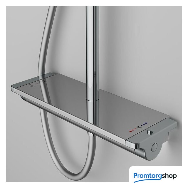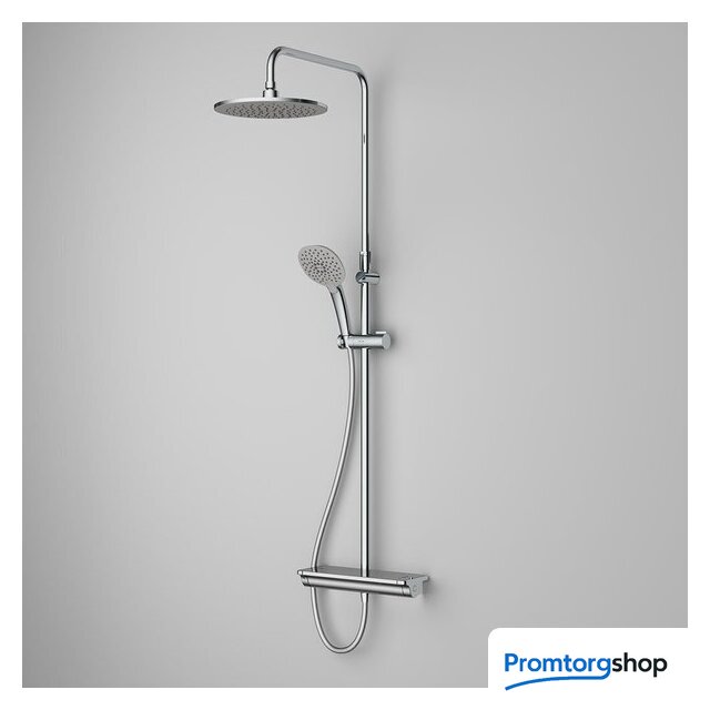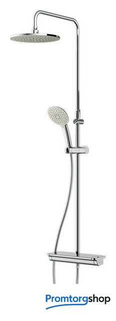 Комплектация | верхний душ, штанга, ручной душ (лейка), держатель лейки, шланг, смеситель, полочка |