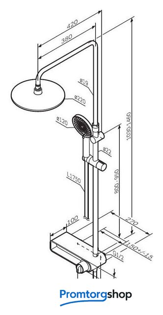| Диаметр (ширина) верхнего душа | 220 мм |