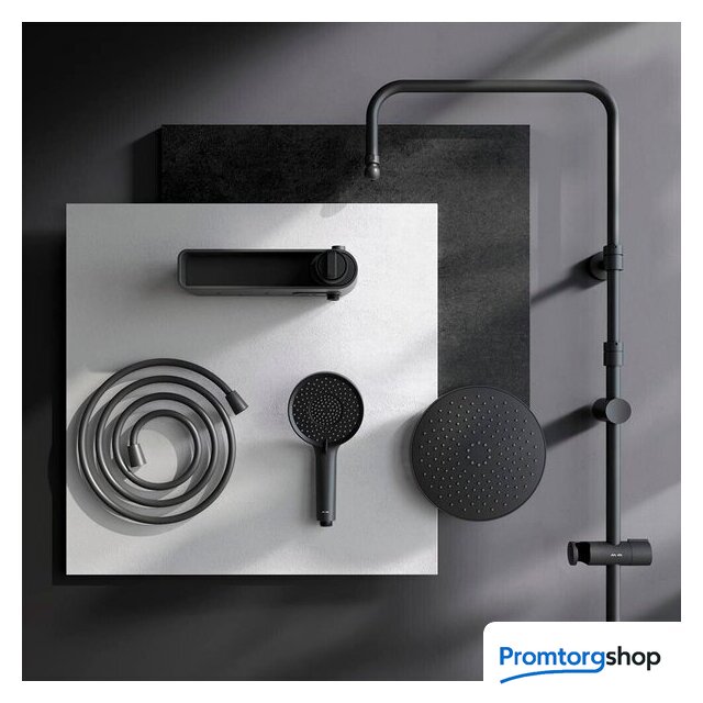 | Комплектация | верхний душ, штанга, ручной душ (лейка), держатель лейки, шланг, смеситель, полочка |