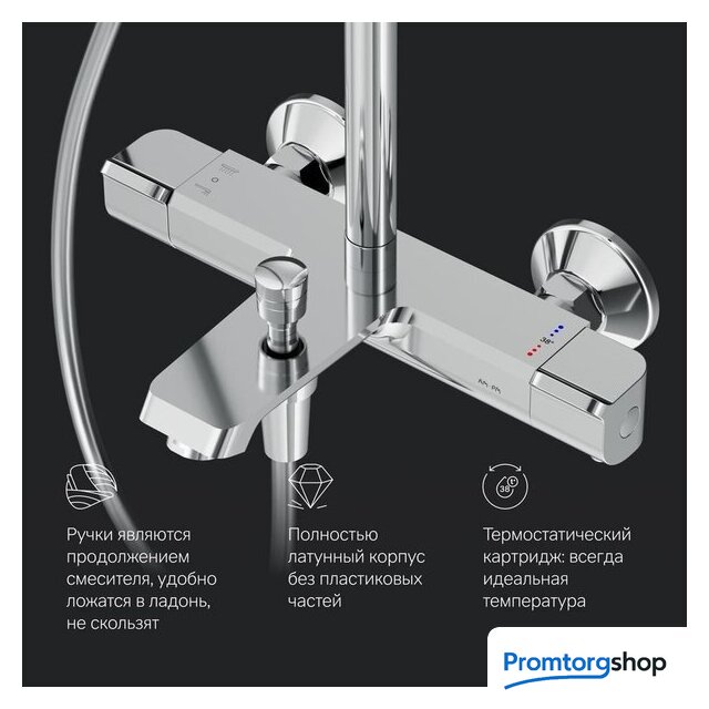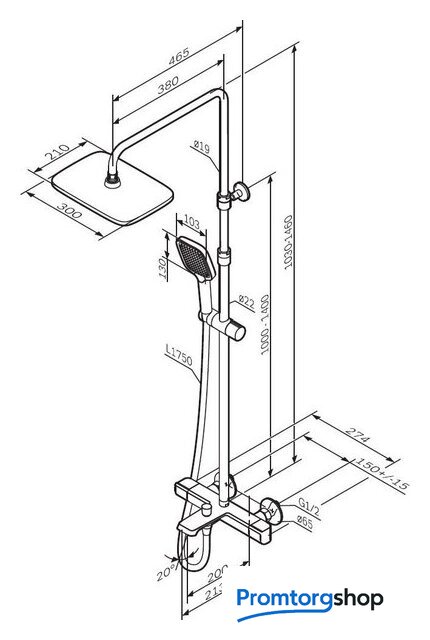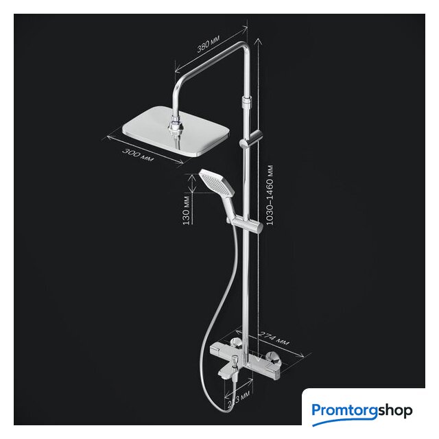 | Комплектация | верхний душ, штанга, ручной душ (лейка), держатель лейки, шланг, смеситель, излив для ванны |