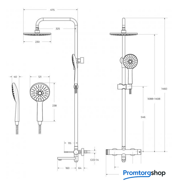 | Диаметр (ширина) ручного душа | 121*238 мм |