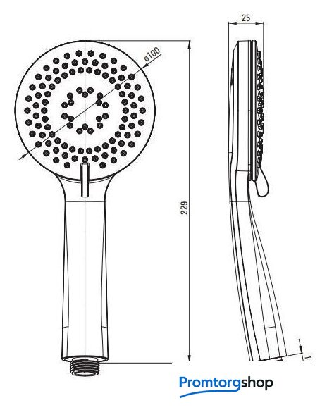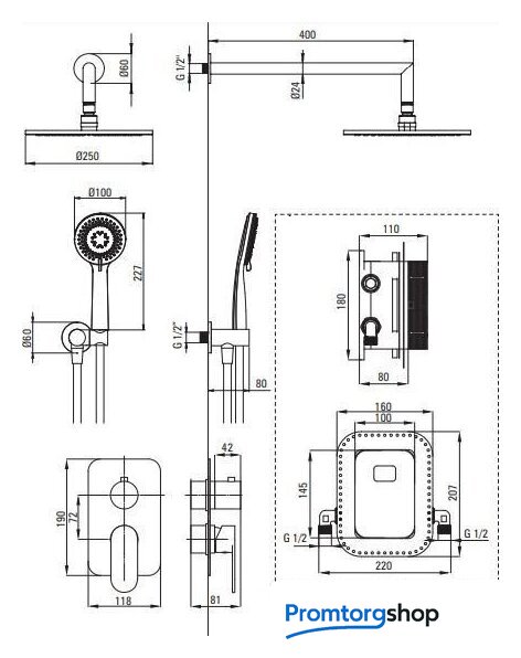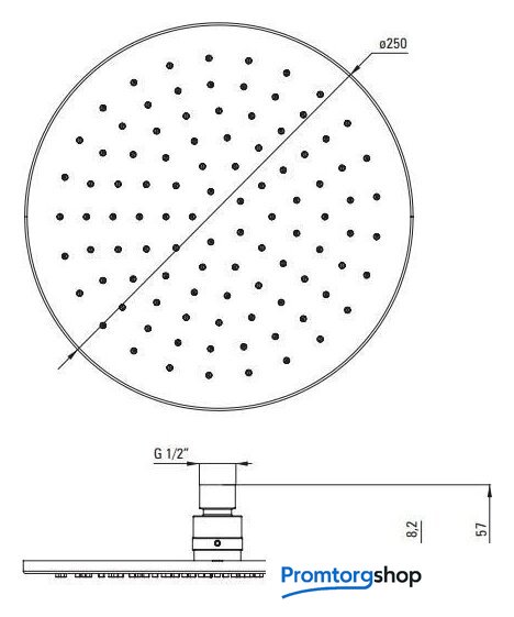 | Диаметр (ширина) верхнего душа | 250 мм |