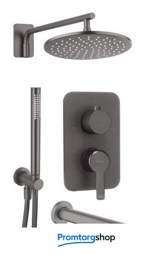 | Комплектация | верхний душ, ручной душ (лейка), держатель лейки, шланг, смеситель, излив для ванны |