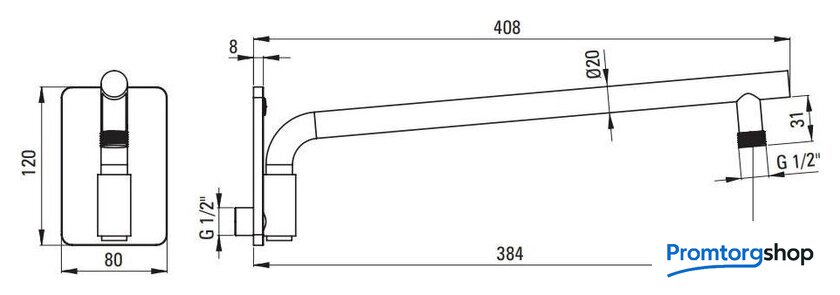 Вылет верхнего душа | 400 мм |