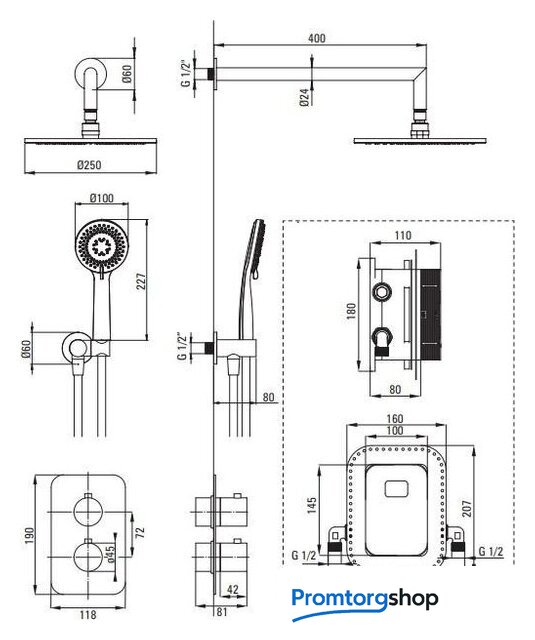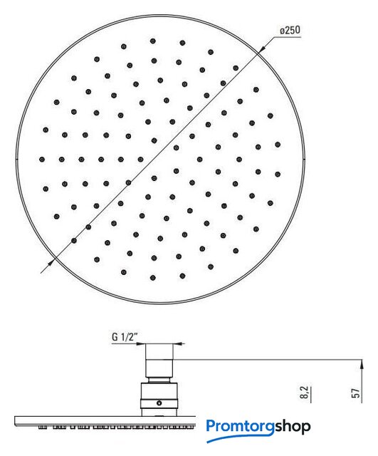 Диаметр (ширина) верхнего душа | 250 мм |