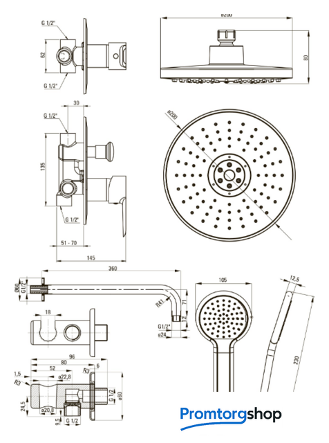 | Форма верхнего душа | круглая. Материал ABS-пластик |