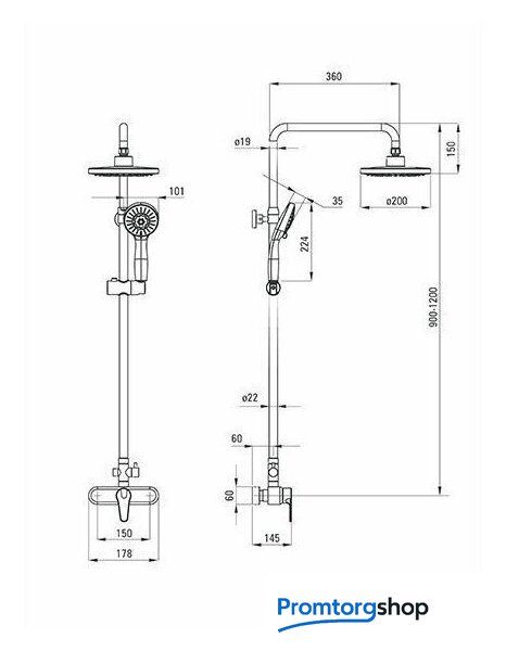 | Диаметр (ширина) верхнего душа | 200 мм |