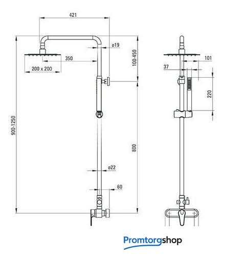 | Диаметр (ширина) верхнего душа | 200 мм |