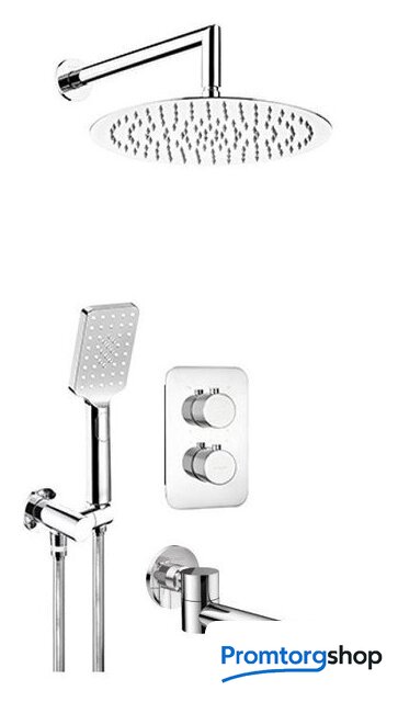 | Комплектация | верхний душ, ручной душ (лейка), держатель лейки, шланг, смеситель, излив для ванны |