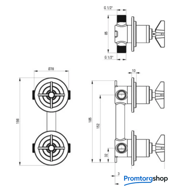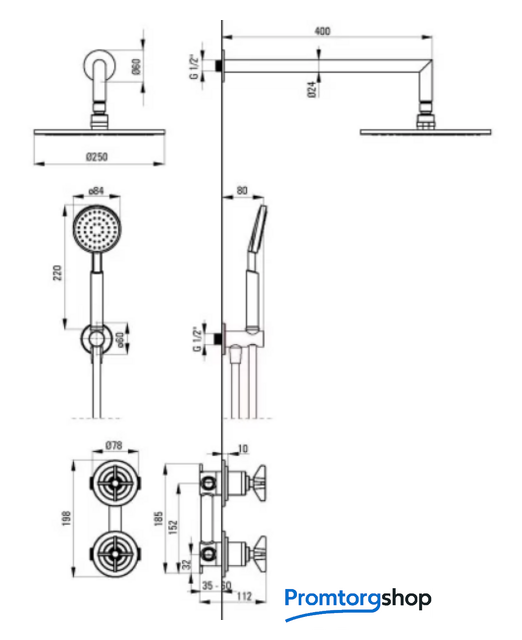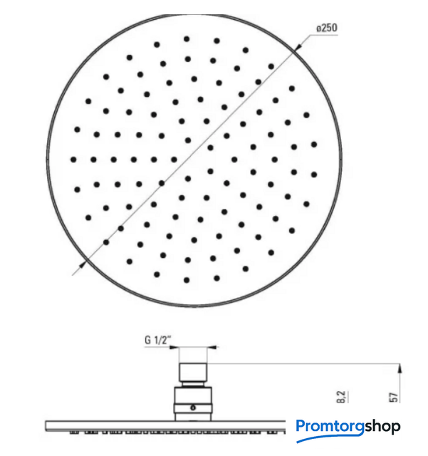 | Диаметр (ширина) верхнего душа | 250 мм |