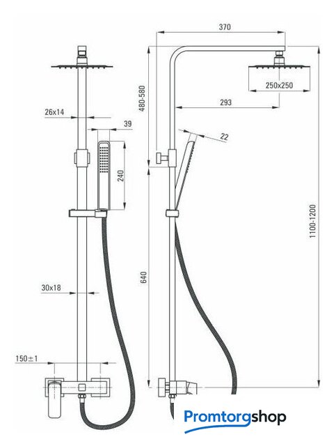 | Диаметр (ширина) верхнего душа | 250 мм |