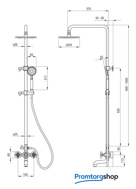 Диаметр (ширина) верхнего душа | 250 мм |