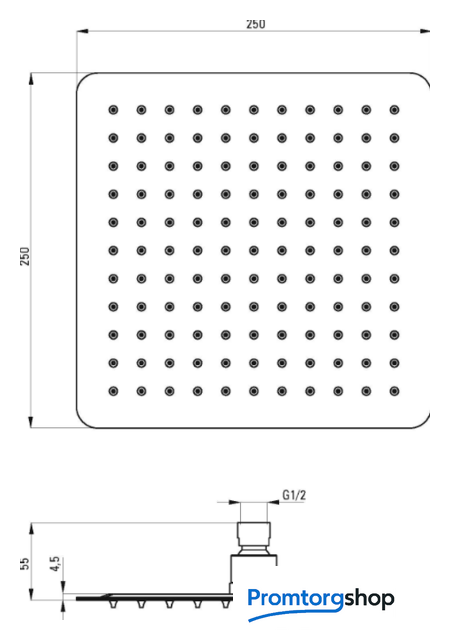 | Форма верхнего душа | квадратная. Материал нержавеющая сталь, латунь |