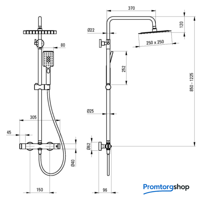 | Диаметр (ширина) верхнего душа | 25*25*4.5 см |