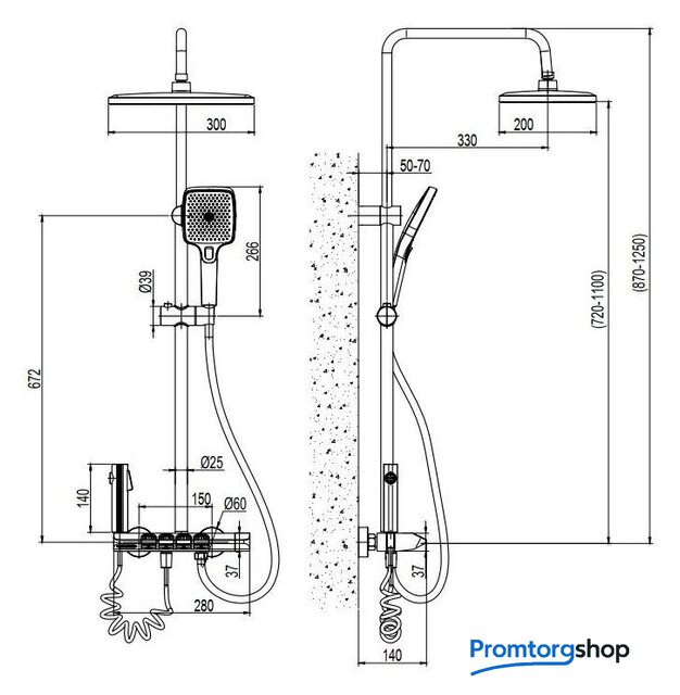 | Диаметр (ширина) верхнего душа | 300 мм |