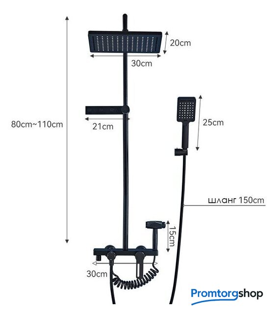 | Комплектация | верхний душ, штанга, держатель лейки, шланг, смеситель, гигиенический душ (лейка) |