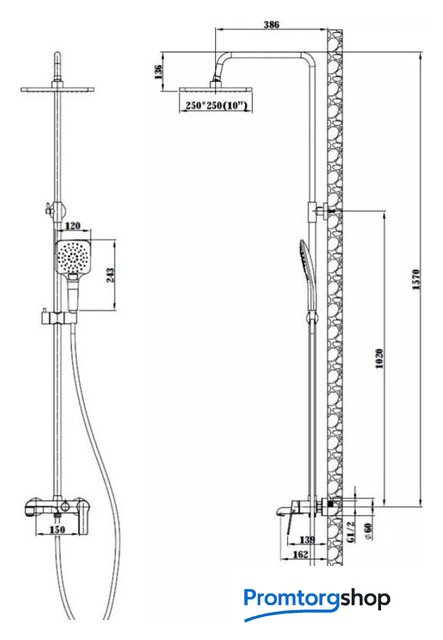 Диаметр (ширина) верхнего душа | 250 мм |