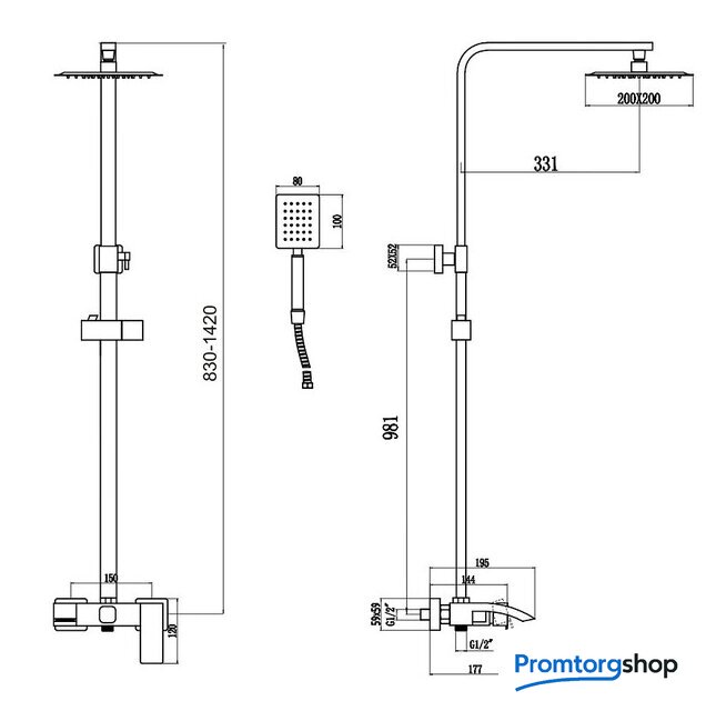 Форма ручного душа | прямоугольная, ABS-пластик |