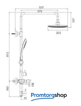 | Комплектация | верхний душ, штанга, ручной душ (лейка), держатель лейки, шланг, смеситель, излив для ванны |