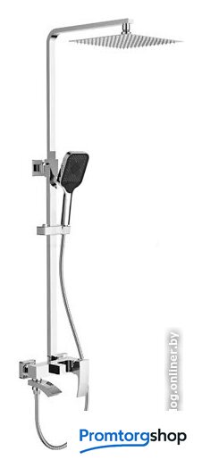 Комплектация | верхний душ, штанга, ручной душ (лейка), держатель лейки, шланг, смеситель, излив для ванны |