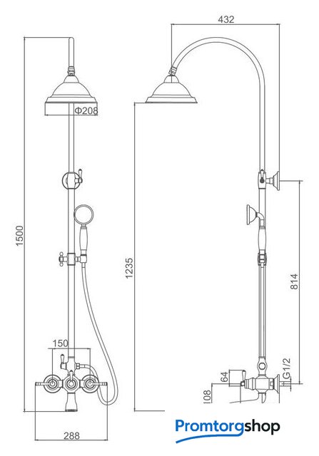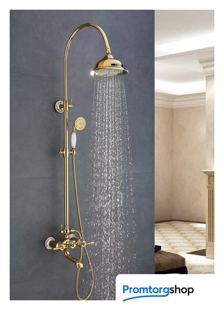 | Комплектация | верхний душ, штанга, ручной душ (лейка), держатель лейки, шланг, смеситель, излив для ванны |