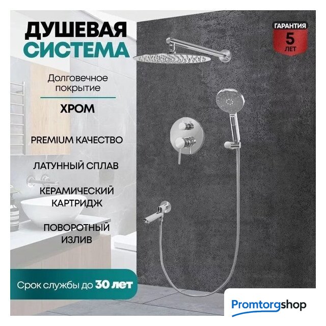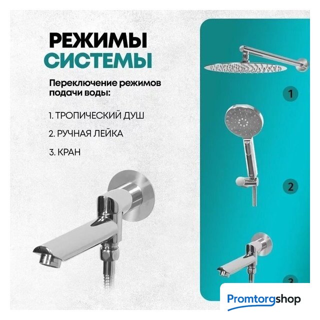 | Комплектация | верхний душ, ручной душ (лейка), шланг |