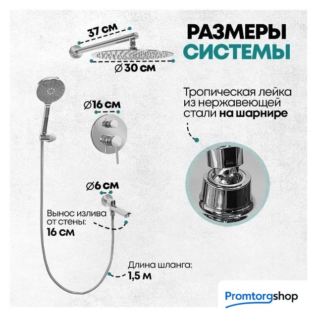 | Диаметр (ширина) верхнего душа | 300 мм |