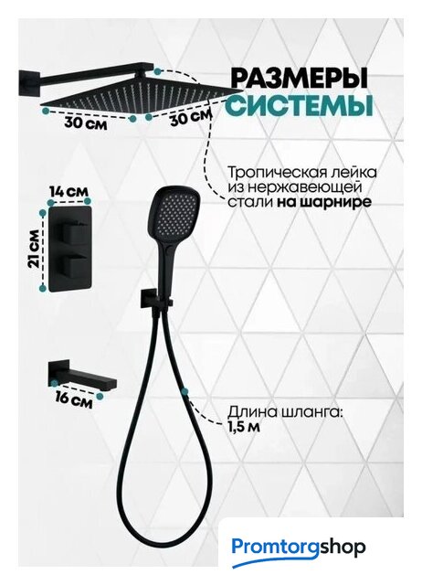 | Диаметр (ширина) верхнего душа | 300 мм |