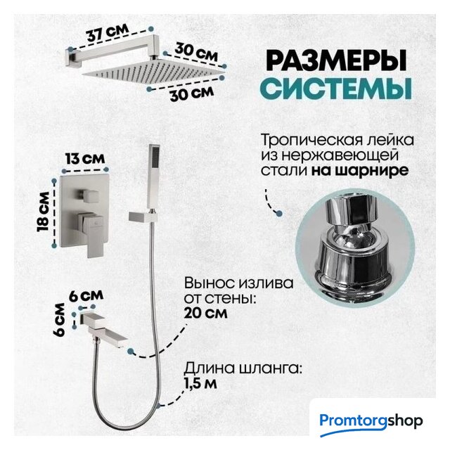 | Диаметр (ширина) верхнего душа | 300 мм |