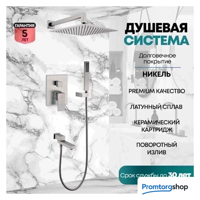 | Комплектация | верхний душ, ручной душ (лейка), шланг |