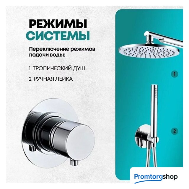 душевая система (с верхним душем), скрытый монтаж, механический смеситель