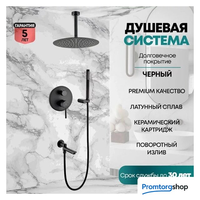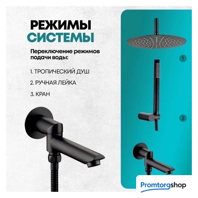 | Комплектация | верхний душ, ручной душ (лейка), шланг |