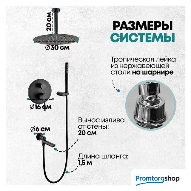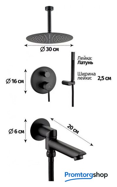 | Диаметр (ширина) верхнего душа | 300 мм |