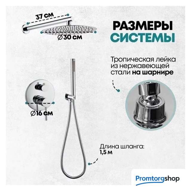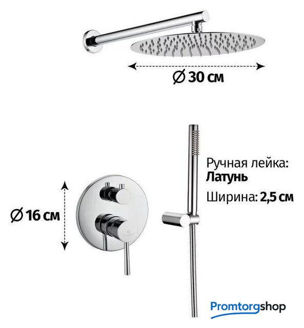 | Диаметр (ширина) верхнего душа | 300 мм |