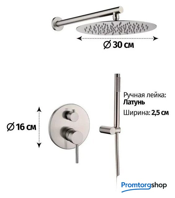 | Диаметр (ширина) верхнего душа | 300 мм |