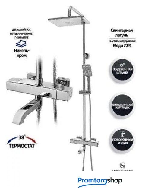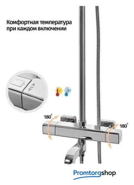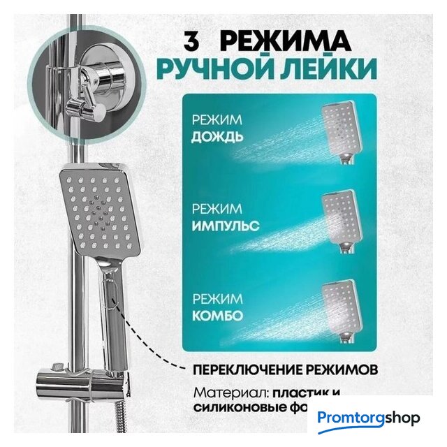 | Комплектация | верхний душ, штанга, ручной душ (лейка), шланг |