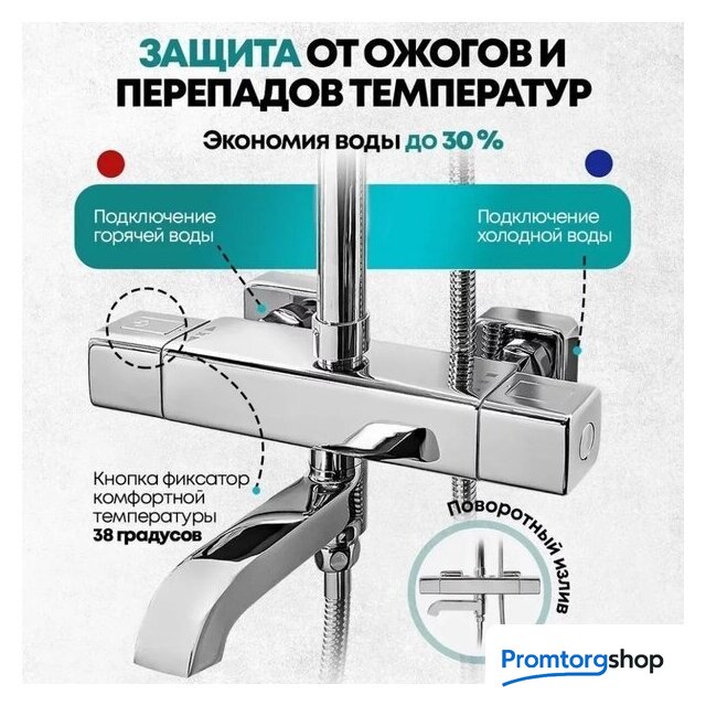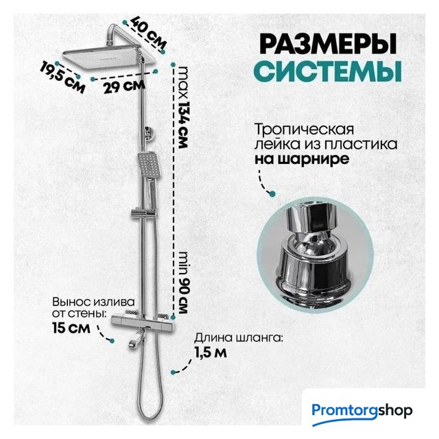 | Диаметр (ширина) верхнего душа | 290 мм |