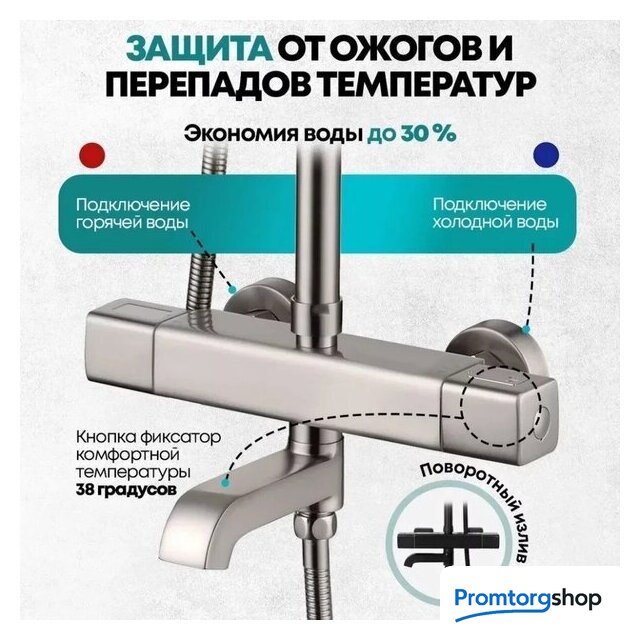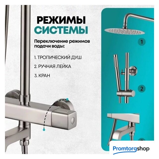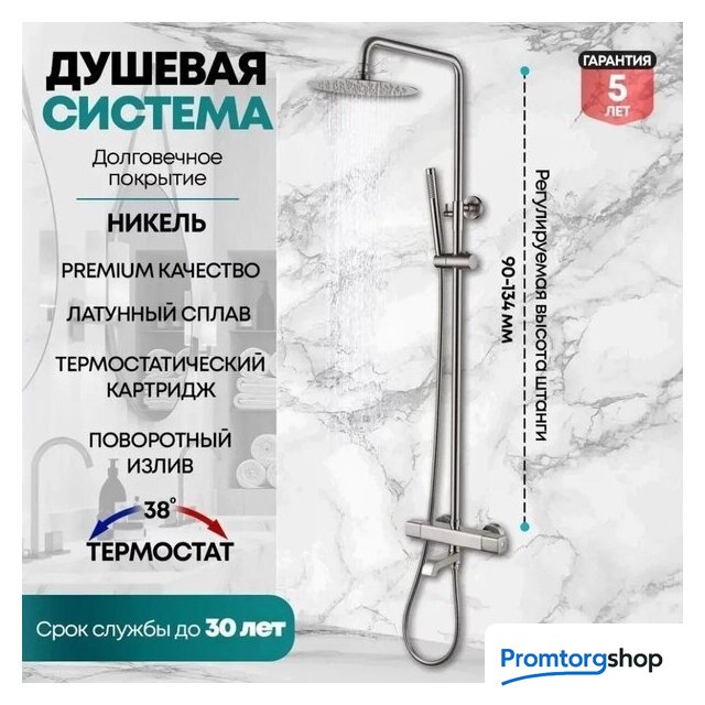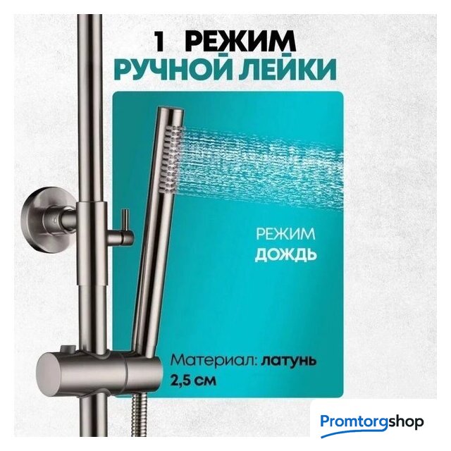 | Комплектация | верхний душ, штанга, ручной душ (лейка), шланг |