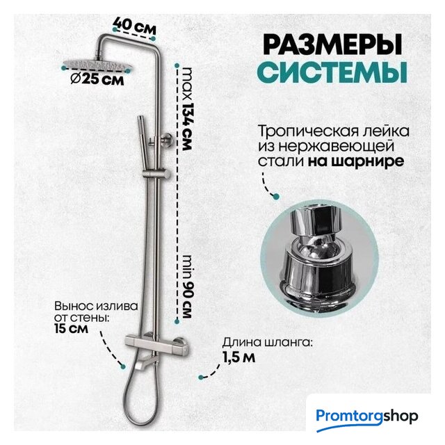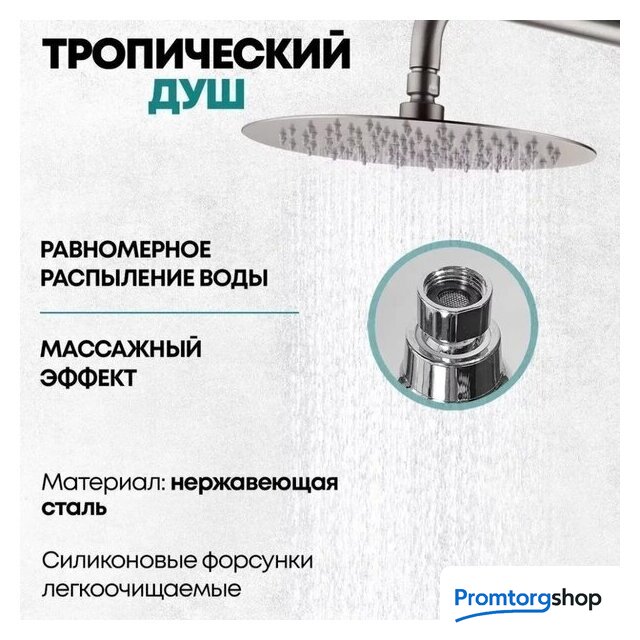| Диаметр (ширина) верхнего душа | 250 мм |