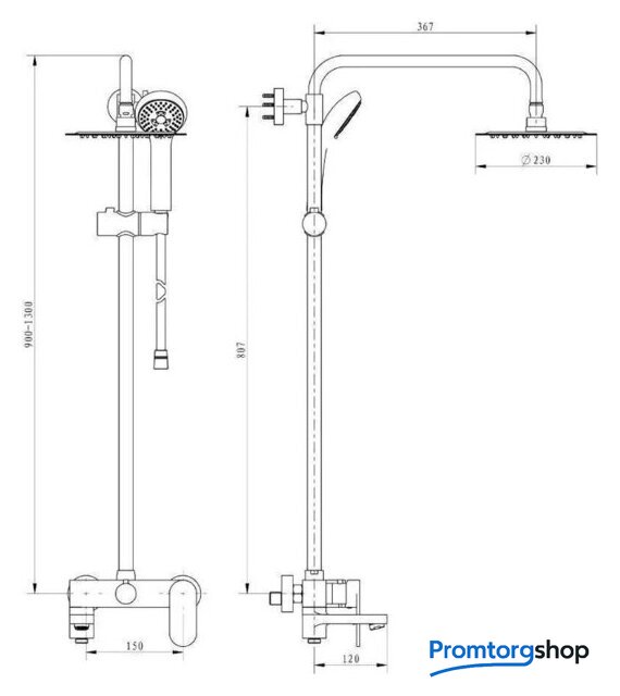 | Диаметр (ширина) верхнего душа | 260 мм |