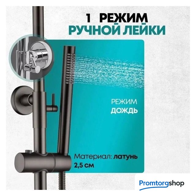 | Комплектация | верхний душ, штанга, ручной душ (лейка), шланг |