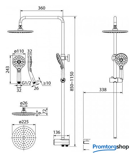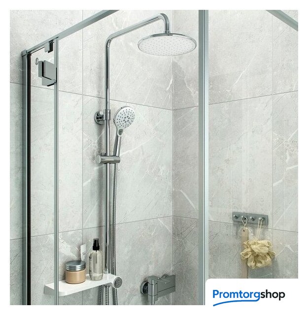 Комплектация | верхний душ, штанга, ручной душ (лейка), держатель лейки, шланг, полочка |
