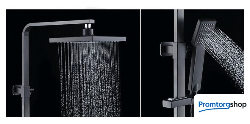 | Комплектация | верхний душ, штанга, ручной душ (лейка), держатель лейки, шланг, смеситель, излив для ванны |