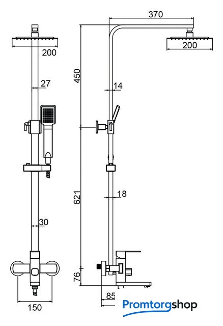 | Диаметр (ширина) верхнего душа | 200 мм |
