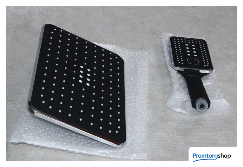 | Комплектация | верхний душ, штанга, ручной душ (лейка), держатель лейки, шланг, смеситель |
