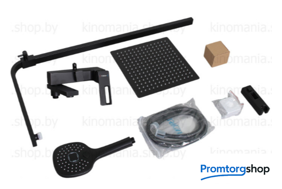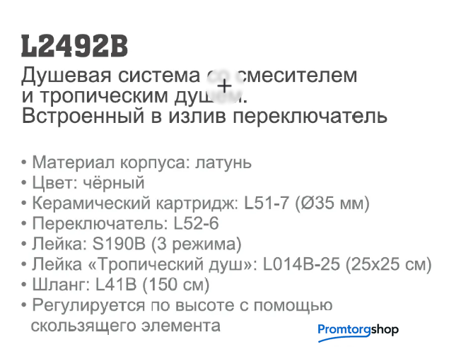 Тип | душевая система (с верхним душем). Особенности: Регулируемая высота штанги душевой системы. Стильный дизайн, ручка. Встроенный в излив переключатель. Кнопочный переключатель на ручной лейке. |